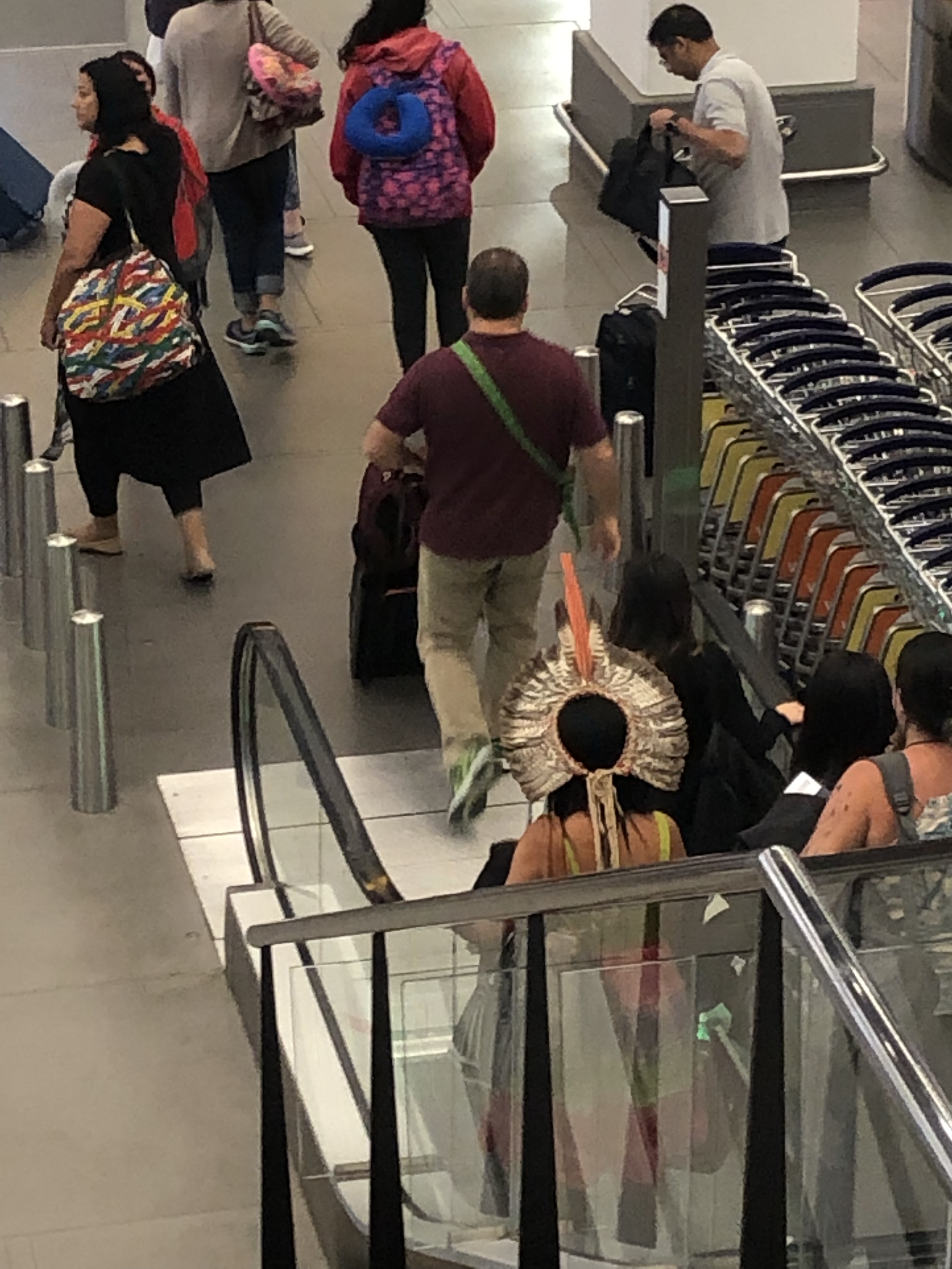 Schiphol; de vakantie is begonnen. Een voorkruiper in de rij, die uiteindelijk nog voor ons staat en vast komt te zitten in de selfcheck. Karma! En een prachtige mevrouw op de trap.