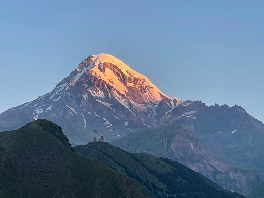 Vanochtend werd ik heel vroeg wakker, uur of 5, en man wat was het uitzicht prachtig. Ik heb er zelfs Roelof voor wakker gemaakt. De berg in de verte schijn je niet vaak zonder wolken te zien. (“Rumor has it that it shows it’s top only to people with pure heart and soul”). Ik vraag me af of het niet aan de tijd van de dag ligt. we hebben hem al in heel wat weertypen gezien. Best goede plek voor een time lapse (wat ik zelf natuurlijk niet zou bedenken, idee van Marijn)