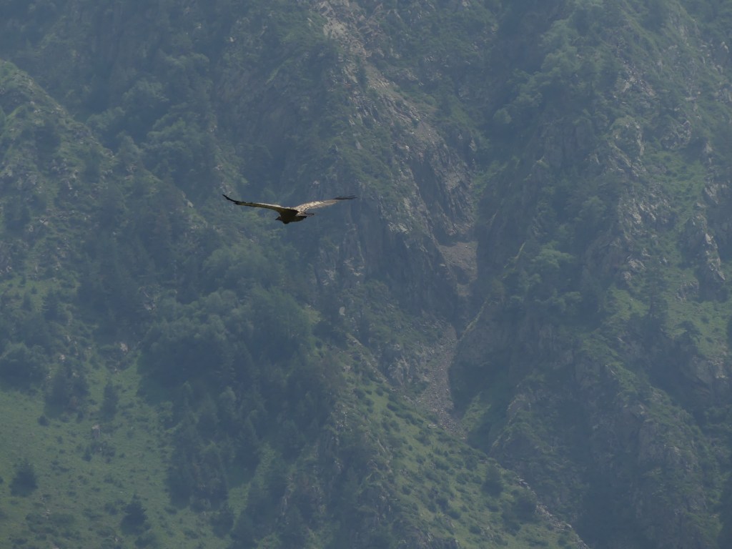 En toen in de lucht gieren, waanzinnig wat een beesten. Prachtig hoe ze rond de bergen suizen. Best lastig vast te leggen. En dus stonden, zaten, lagen we met onze rug naar de waterval te wachten op de gieren. We hebben de soort net opgezocht; de vale gier. wij zijn toch meer van beesten dan van landschappen. Maar toch met een vlinder, een vogel en natuur krijgt deze omgeving het stempel hidden little gem.