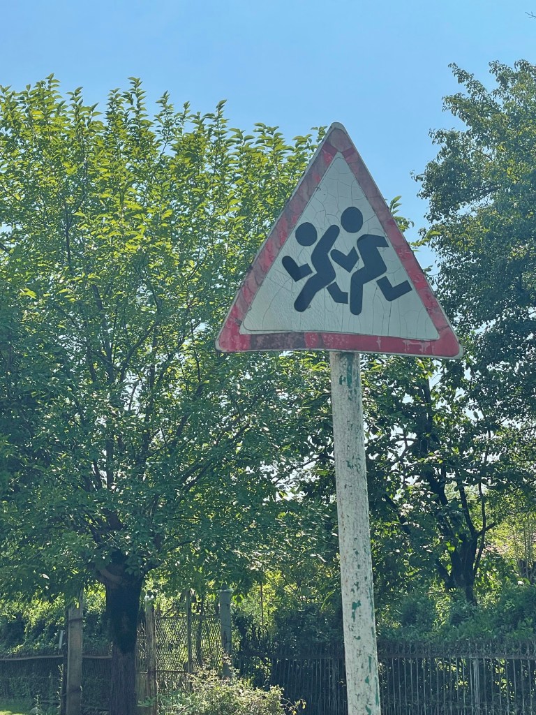 Ons favoriete verkeersbord is de vader die achter zijn kind aan rent. Of de man die zijn kind slaat. Daar moet je altijd om denken.