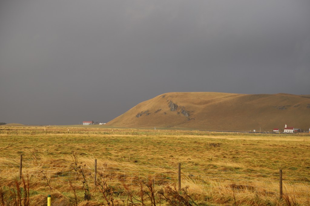 Daarna door naar Vik, bekend van de serie Katla. Zo heet ook de vulkaan onder de kleine gletsjer Myrdalsjökull. Nou ja klein, 595 km2. Onderweg een bizarre wisseling van gebieden. Zwarte vlaktes, mosbollen, heuvels diet het best als trollentieten beschreven kunnen worden. Het is nevelig en somber en indrukwekkend mooi.