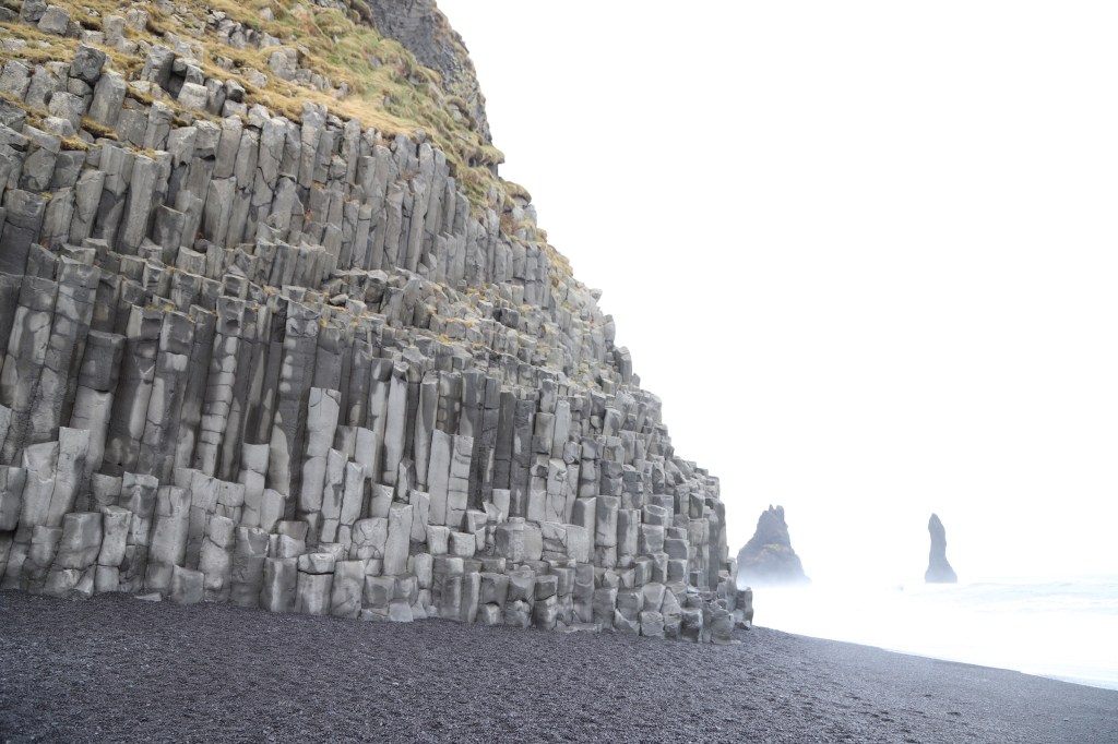 Vandaar door naar Reynisdrangar. Een black sand beach met een Game of Thrones rotswand. Prachtige basaltblokken. En helaas een Italiaanse familie die denkt dat zij de enige zijn die op de foto willen. Volgens Roelof hebben papegaaiduikers in de winter een ander jasje, ze lijken dan sprekend op een zeemeeuw en we hopen dat ze op de Italianen schijten. Roelof ontdekt dat als je de golven telt, je om de muur kunt rennen en dat de achterkant ook indrukwekkend is en zonder toeristen.