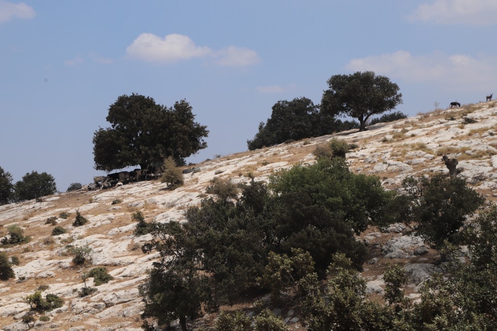 De weg hier naartoe is prachtig. Overal oude bomen die uit de witte rotsgronden lijken te groeien. Oude olijfgaarden. Nomaden met hun geiten, koeien en zelfs een dromedaris. We rijden verkeerd, gelukkig zou ik willen zeggen. Het is prachtig. Het ijs met onze chauffeur is eindelijk gebroken. Hij vertelt over het Noorden. Blijkbaar heeft ons enthousiasme hem ontdooid. Hij wijst de Golanhoogten en Syrië aan.
