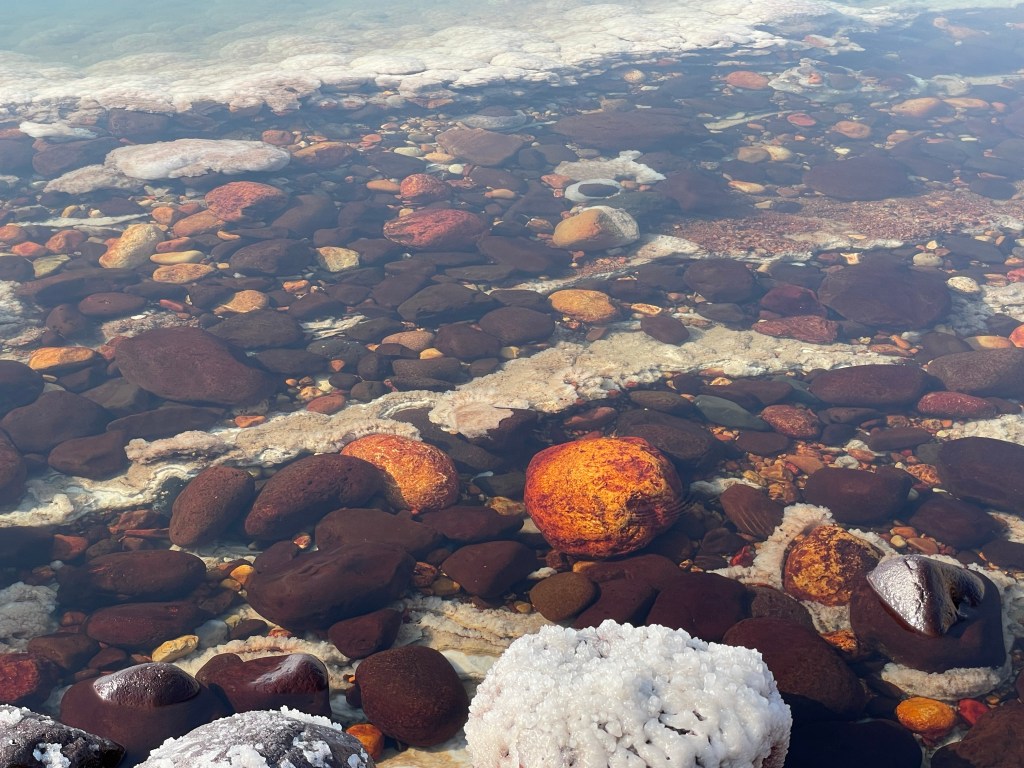 Ik vind het echt prachtig bij het water. Bizar. Het water is zo zout dat oude zoutlagen niet oplossen.