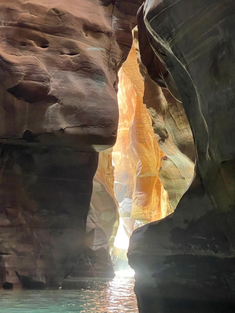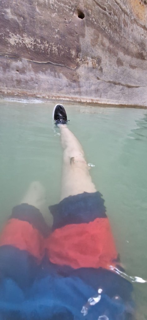 Maar WOW is dit gaaf; de torenhoge muren van rood zandsteen, de blauwe lucht erboven, het bruisende water.