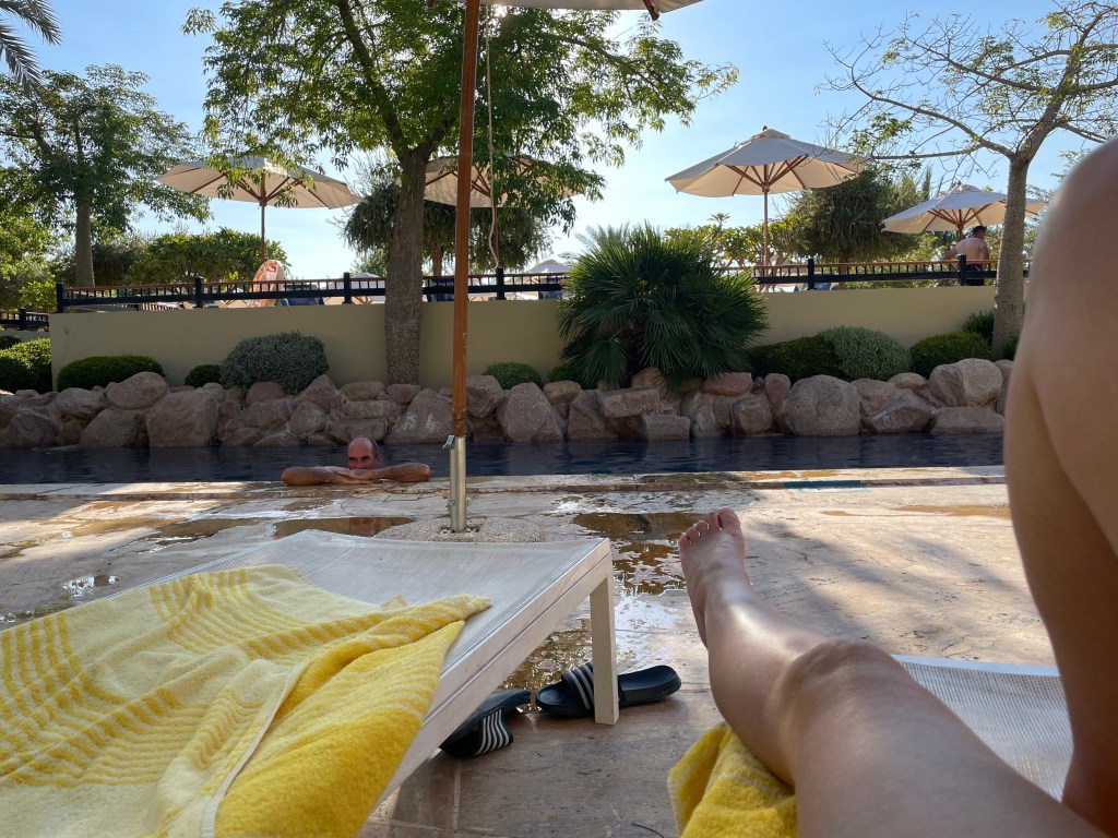 En verder hebben we in zee gedobberd en in het zwembad en in een stoel gehangen. Cool zwembad je kan helemaal rond de terrassen zwemmen. Rustdag!
