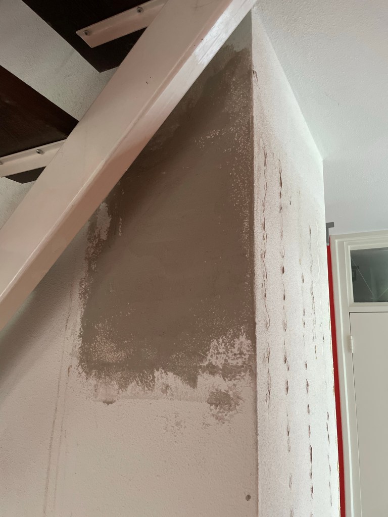 En toen deed ik per ongeluk een goede zet. Ooit op een reis hadden we 3 uur vertraging, na een uur kwam de manager van het restaurant en zei:” ik heb goed nieuws, ze zijn er met een kwartier.” De meesterlijke truc is: je brengt reteslecht nieuws en halveert het als de eerste schok is afgezakt. De ontvanger van het nieuws zal de tweede boodschap als goed nieuws ontvangen. Ik keek rond en bedacht project 7. We hadden even niet aan de muren gedacht: “nou de tegelmannen op zich laten wachten zouden we we niet laten stucken?” Roelof verschoot van kleur, ook wel terecht vind ik, en was vrij duidelijk No Way. Maar hij zag rondkijkend wel dat er wat moest en dat dat handig was voor de tegels kwamen. Dus muren verven vond hij wel een goed idee.