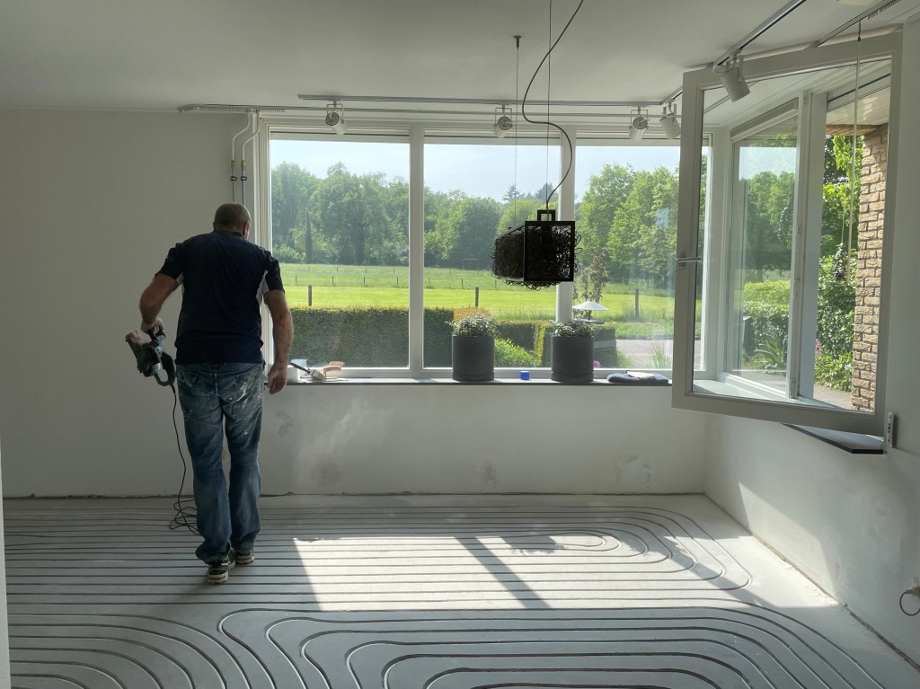 Je moet nooit denken dit loopt gesmeerd. Dat is een beetje dom. De tegelzetters vroegen of ze donderdag 18 mei mochten komen. De afspraak stond voor maandag 22 mei en verder. Omdat we niet wisten hoe het zou lopen met de sleuven zeiden we “nee dat lukt niet” en dachten dat daarmee de oude datum zou blijven staan. Maar wie er ook verschenen op 22 en 23 mei, geen tegelzetters. Ze hadden een nieuwe planning gemaakt het werd 1 en 2 juni. We gaven subtiel aan dat we dat geen goed plan vonden. Dat kamperen in je eigen huis leuk is voor een week, twee max en dan zonder gebroken vinger. Dat er geen verwarming is. (Gelukkig wel warm water) En dat onze hond in de opvang zit omdat een sleuvenvloer niet te belopen is voor een hond.