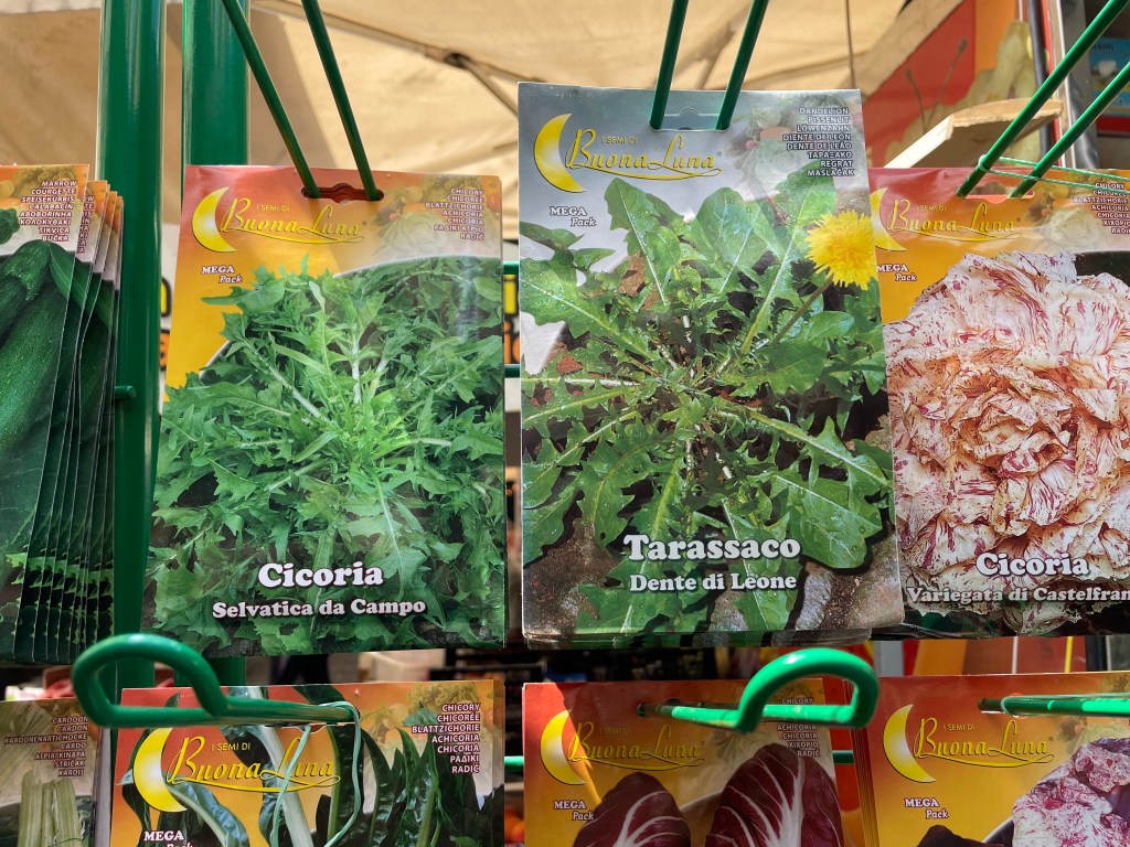 Daarna zag ik een markt tussen de huizen door. Het bleek de versmarkt met lokale producten. Ik had de eerste dag gezegd dat het me leuk leek maar was het daarna totaal vergeten. We zochten op hoe cichorei er ongekookt uitziet. Nienke zag een andere groente en vertelde me lachend dat ik daar genoeg van heb om bij een buurtfeest het hele buffet te verzorgen. We schateren om het idee van de paardenbloem als groente op de markt. Wat schets onze verbazing even later als we zakjes zaad zien hangen en er inderdaad voor €2.50 een zakje paardenbloemzaad te krijgen is.