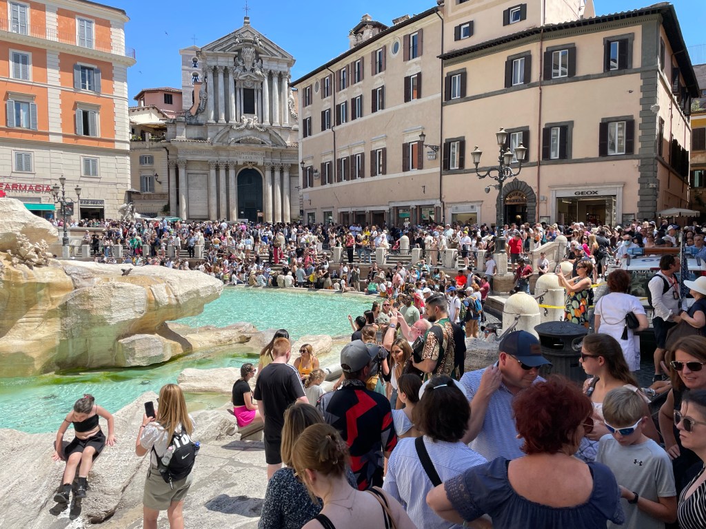 En dan gaan we naar de Trevifontein. Ik omdat ik denk dat Nienke dat graag wil. En Nienke voor mij. Het krioelt van de toeristen. Het is bloedheet. Er staan 6 politieagenten als gekken op fluitjes te blazen om te voorkomen dat mensen op het marmer gaan zitten of met water spelen. En ik word er zo chagrijnig van. Ik heb geluk dat ik met drie stedenhatende mannen nooit in dit soort situaties kom. Laat ik mild voor mezelf zijn: krioelende mensenmassa’s halen niet het beste in me naar boven.