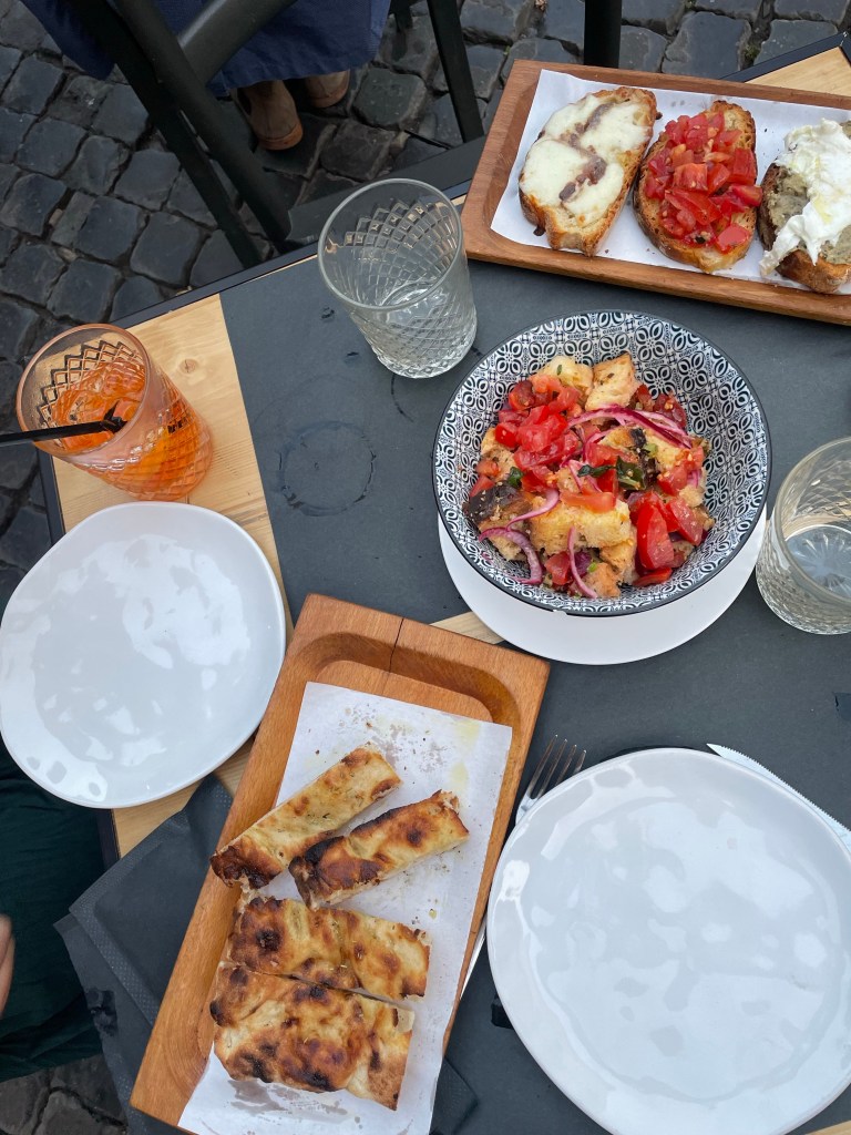 ‘s Avonds weer eten in de Trastevere, het is een mooi wijkje en we kunnen er op onze fietsjes zo heen. We kunnen overleven op de voorgerechten: panzanella en bruschetta.