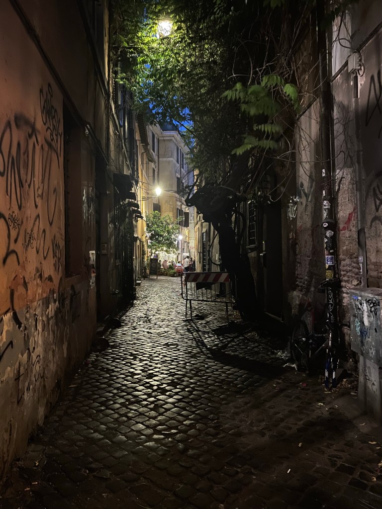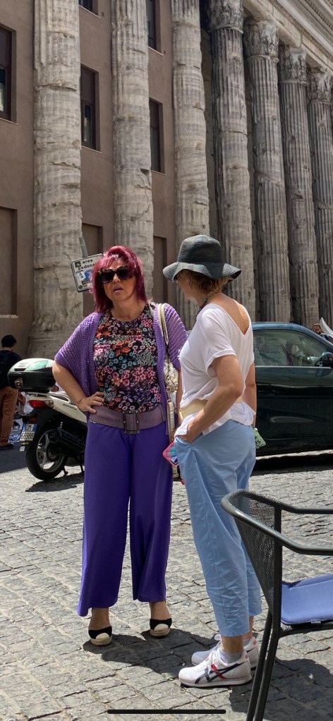 Gelukkig gaan we er al snel weg. De Spaanse trappen slaan we vervolgens over. We gaan naar een andere buurt. Via Margutta met schaduw, huizenhoge jasmijn en winkels met kunst.