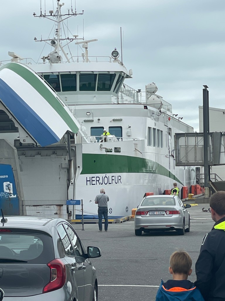 We gaan naar hele jonge eilanden, de Vestmannæyjar, nog maar net 10.000 jaar boven de zee. Ons kaartje voor de boot klopt niet, te snel geboekt en 30/06 ipv 30/07 de heenreis, gelukkig kunnen we nog wel mee. Helaas wel voor de volle prijs. Roelof is teleurgesteld in de gastvrijheid.