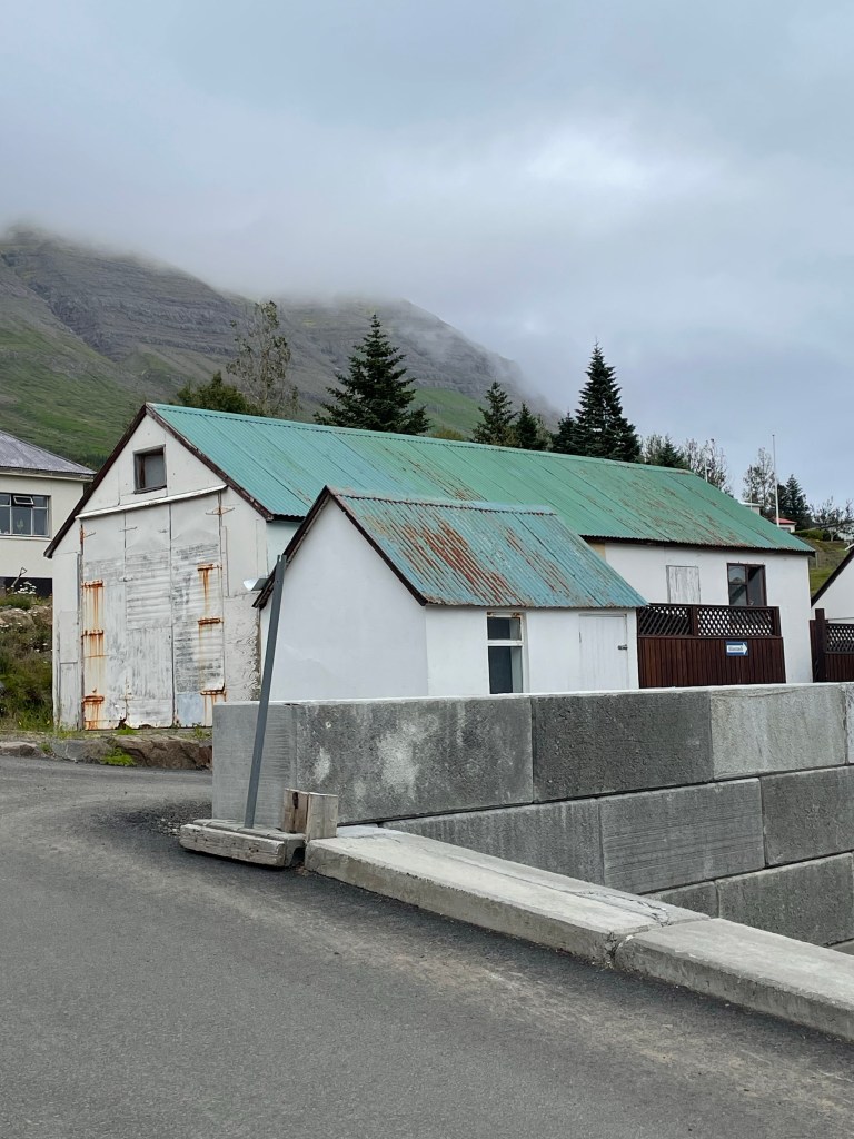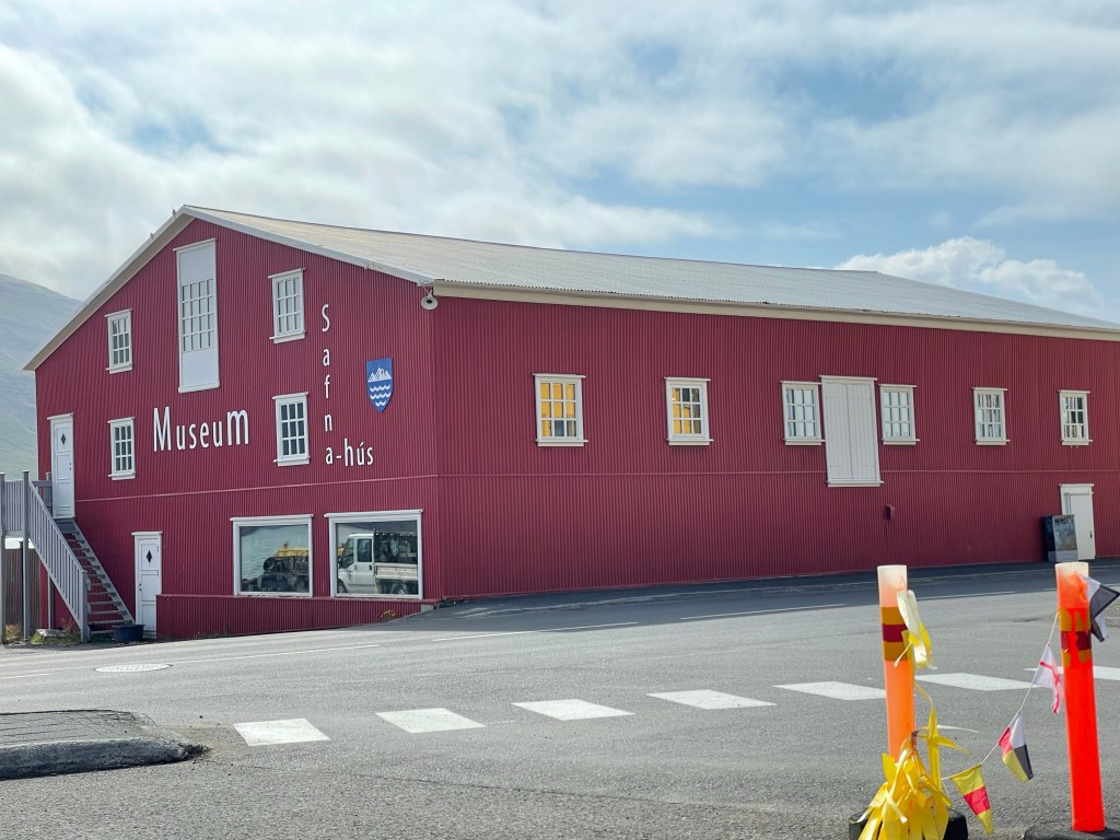We vinden zelfs een museum. Leuk, met gebruiksvoorwerpen van vroeger, oude ambachten, oude foto’s: húsfreyja en skipstjóri. (Schippers en huisvrouwen, nou ja andersom.) Er waren stenen, eieren van allerlei vogels, opgezette beesten en zelfs opgezette vissen. Het leukste waren de twee jongens van een jaar of tien die elkaar aanstootten en fluisterden en toen op ons afkwamen, om te vertellen dat er op de bovenverdieping ook veel mooie dingen waren. Gelukkig in het Engels met handen en voeten werk.