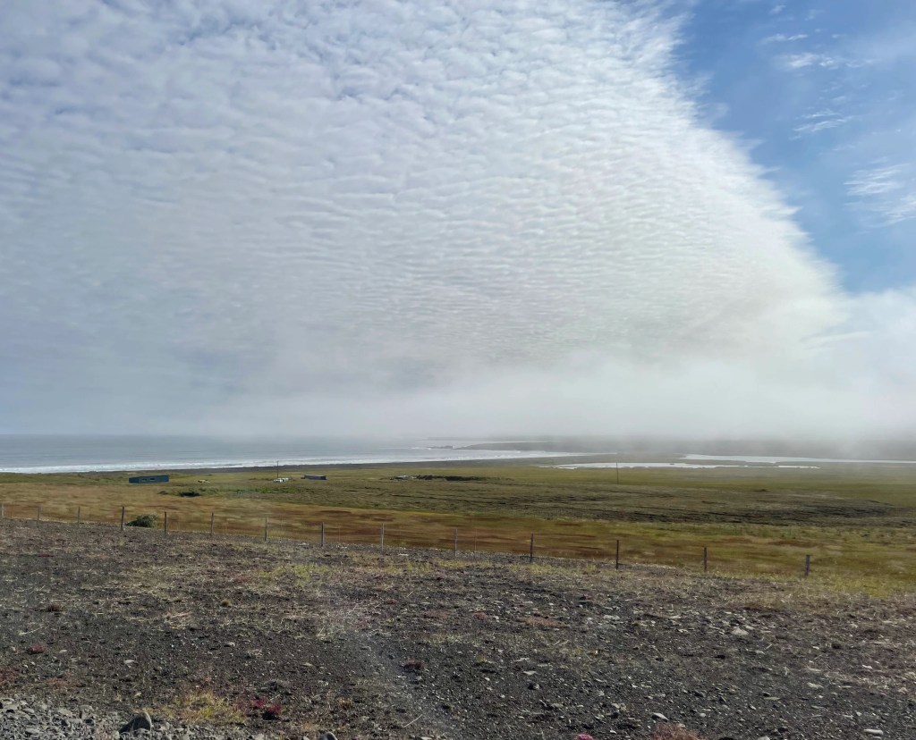 Op het strand liggen heel veel boomstammen, uitgebeten witte stammen, waar komen die vandaan? Als er nl een ding is dat IJsland niet tot nauwelijks heeft zijn dat bomen. Onwerkelijke luchten ontstaan waar de koude lucht van boven de zee de lucht boven het land ontmoet. We zetten de muziek aan, draaien de weg op en horen “Life is a highway”.