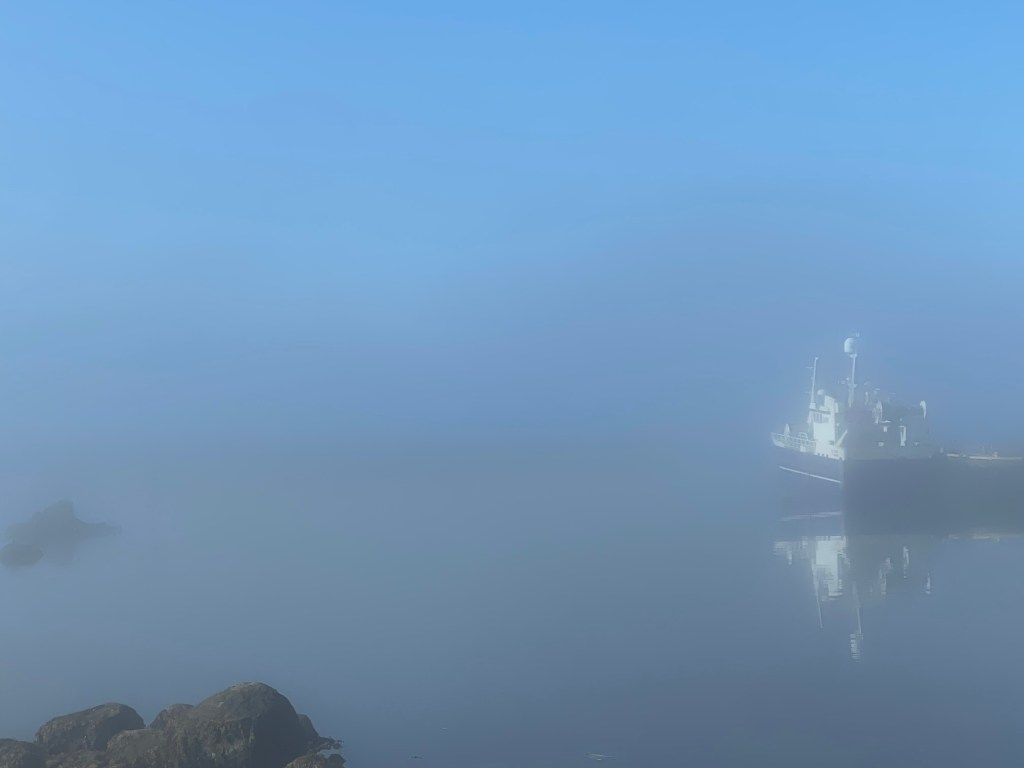 On the road again. Dit is het eerste huis waar ik graag langer was gebleven. Qua sfeer en geur als het huis van tante Anne op Vlieland. De nevel en de zon vanochtend is waanzinnig mooi. Ik hou van zee. Roelof en Thijmen niet: rotte vislucht.