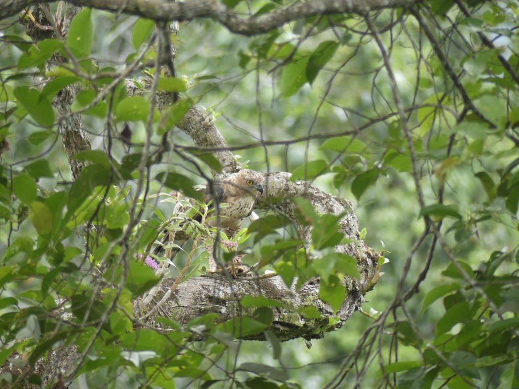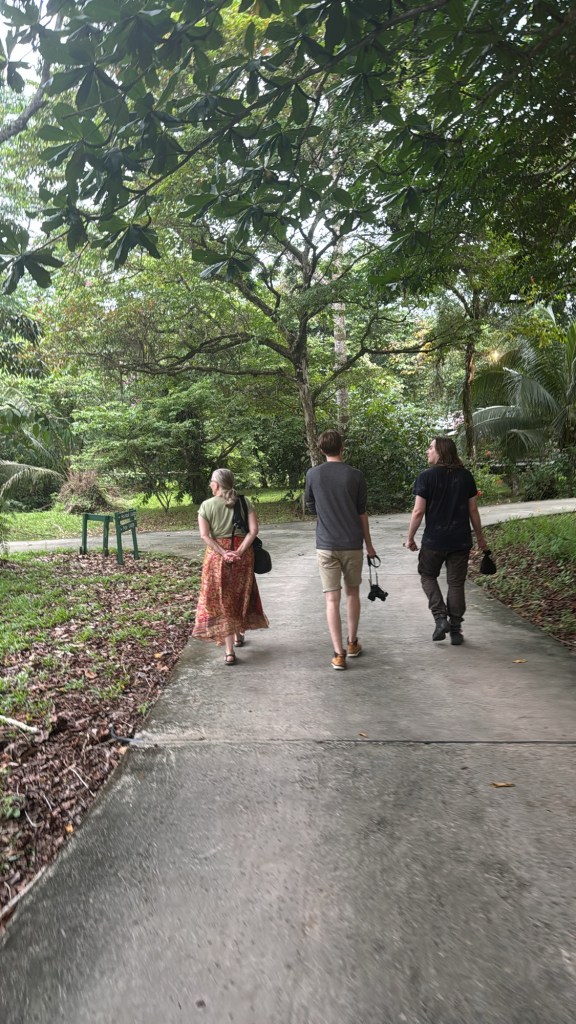 Daarna naar het Rainforest discovery centre. Mooi gedaan met een wandelpad door de boomtoppen. Ik zag weer een neushoornvogel vliegen. We zagen een kleine eekhoorn. En een kleine kuifarend die een kikker opat. Wallace hawk eagle in het Engels, dat klinkt toch echt beter. Thijm is heel goed in spotten.