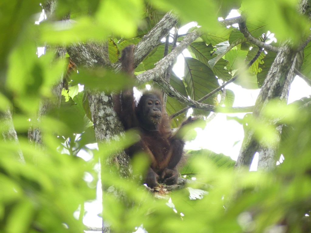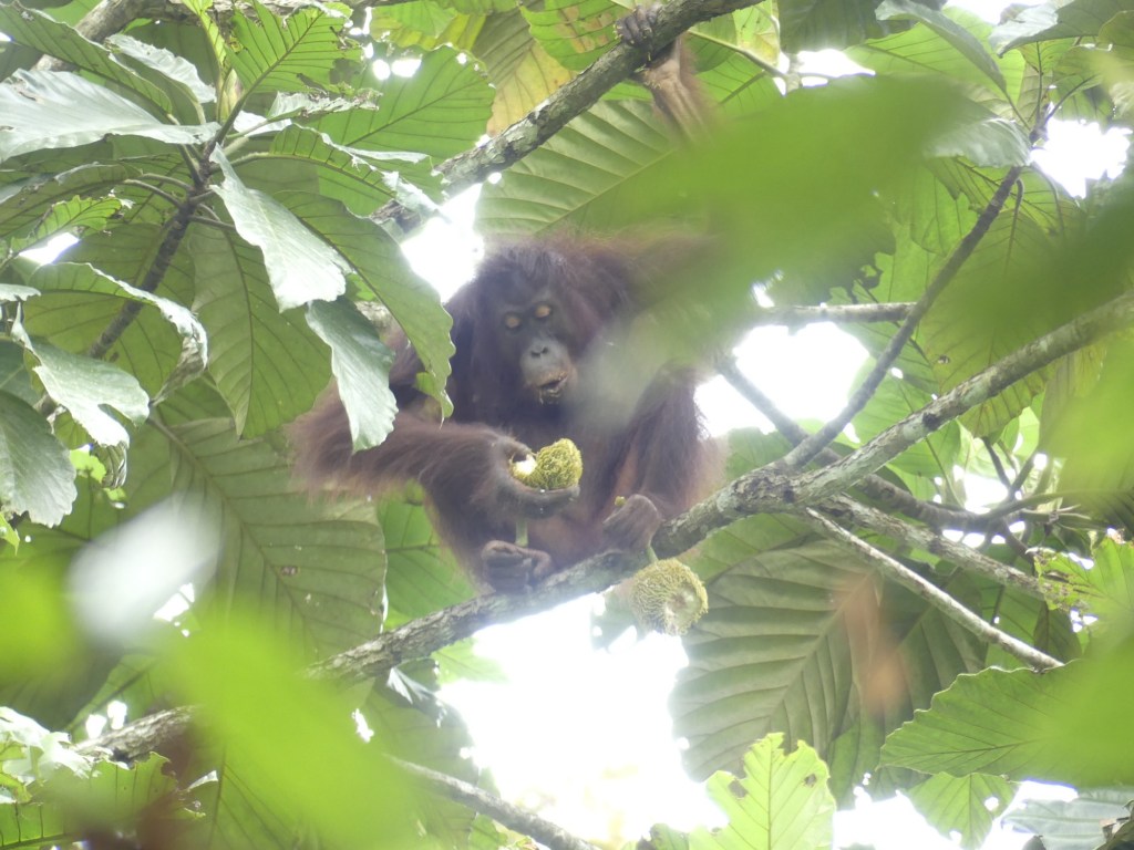 En toen even later gewoon in het wild: twee orang-oetans in een boom. Rustig fruit smikkelend, wat er helaas een beetje uitzag als maden op hun gezicht. Wat gaaf!