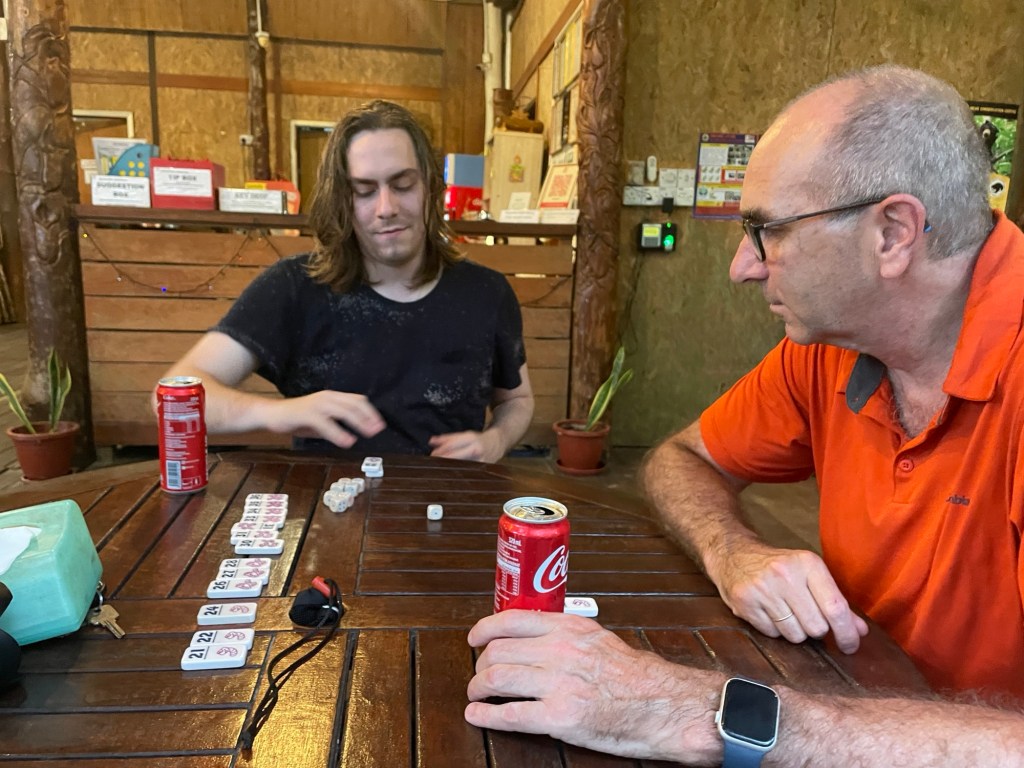 Nu doen we siesta, blog, lezen, buiten zitten, (met opnieuw zonnebrand en Deet) en straks gaan we eten en spelen we een spannend potje regenwormen.