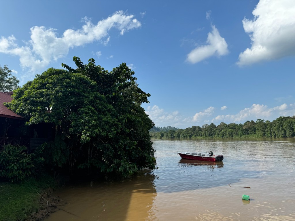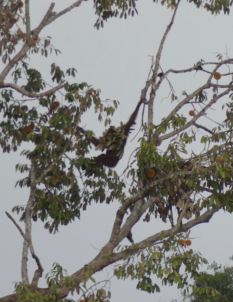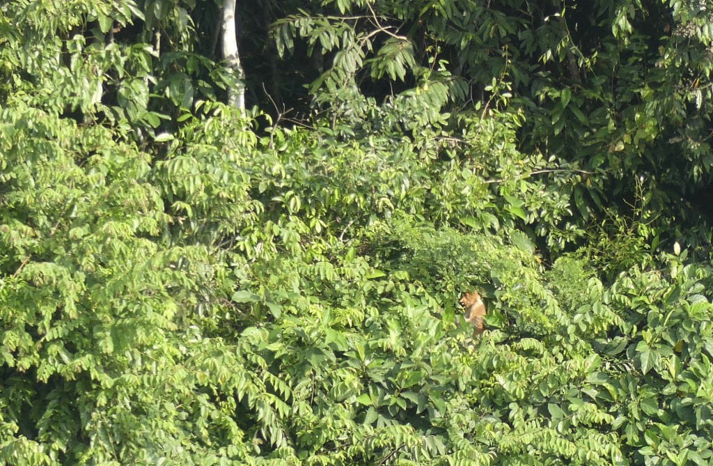 We zijn bij Sukau greenview B&B. Wat een waanzinnig uitzicht over de rivier. Eerst vermaken we ons een poos met een groep Probuscis apen. Inderdaad wat een neus! De naam van dit beest is orang belanda, Nederlandse aap. Naar de grote neus en het bleek rode gezicht. (Ik zou het niet als een compliment beschouwen.) Ze springen van tak naar tak. Daarna in de boom recht tegenover ons een moeder en kind orang-oetang en als toetje vliegen er 6 hornbills de boom in. Wat onwijs cool. Enig minpuntje aan de andere kant van de rivier dus fotografie is next level.
