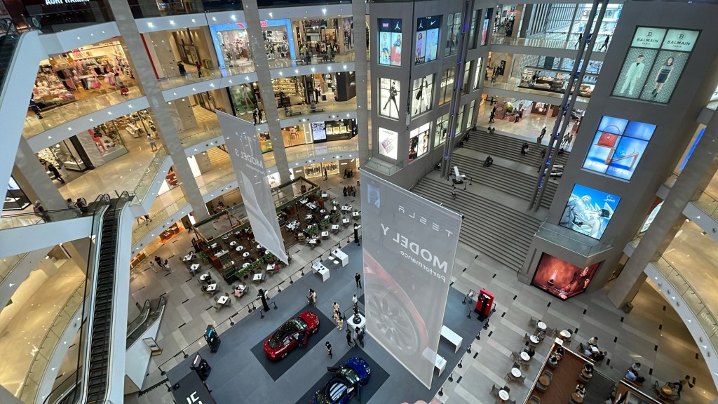 We nemen een grab (soort taxi) en zijn in een vloek en een zucht op de juiste plek. Het is mooi. Daarna gaan we een winkelcentrum in, alleen de duurste merken. We zijn een pietsie underdressed.
