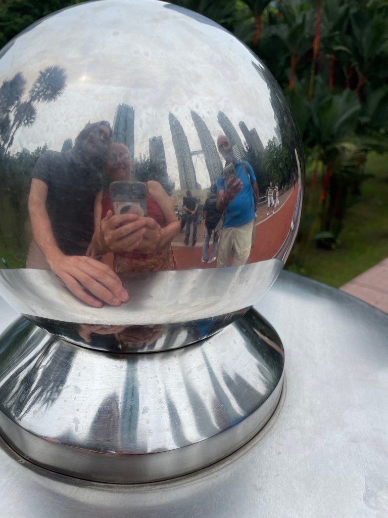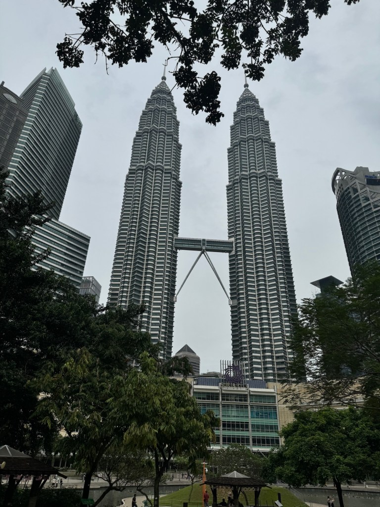 Roelof wil heel graag onder de Petronasbuilding staan. Een soort twintowers en ze zijn echt mooi, 451,9 meter hoog. Het staat niet hoog op mijn lijstje maar ik wil wel mee. Thijmen wil zich wentelen in luxe en blijft in het hotel.