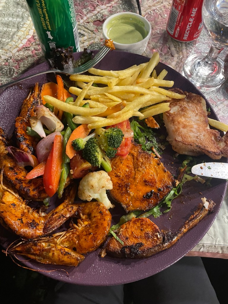 We rijden naar een uitkijkpunt, en kijken in de avondzon over de stad uit. We eten heerlijk seafood vlak bij de vismarkt en nu kruipen we zo in bed.