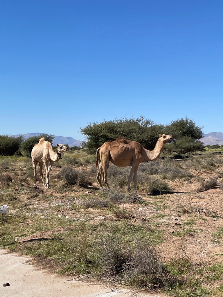 En de kamelen onderweg zijn een genot. Helaas heeft Roelof gisteren de eerste gezien en daarmee de wedstrijd gewonnen. Hij mag een t shirt voor Nienke en mij uitkiezen. We vertellen hem nu hoe duur dat zal zijn. In de hoop om er onderuit te komen.