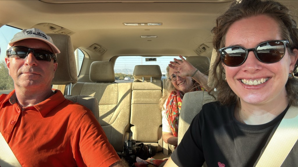 Roelof krijgt net een mailtje met tijd dat we moeten vliegen. Paniek! Welke … dacht het is handig om zo’n mailtje met de vertrektijd in de tijd van Nederland op te stellen???