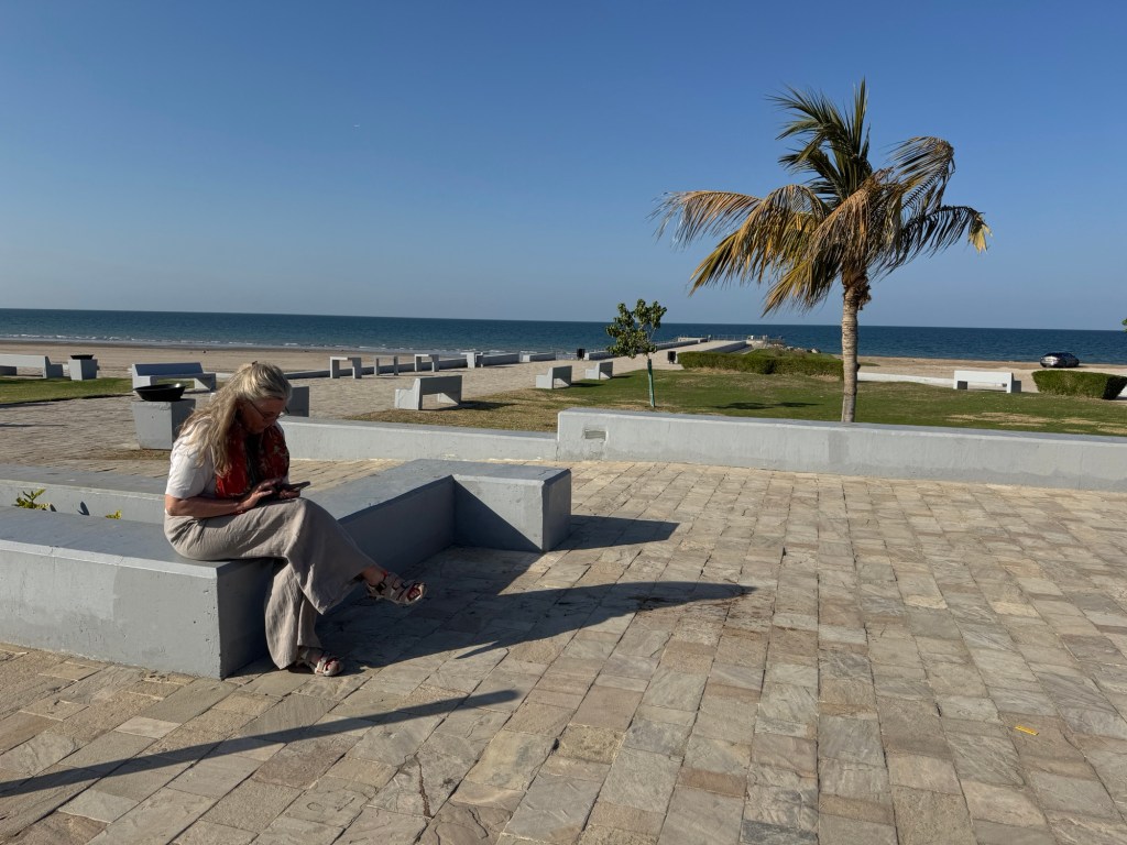 En nu hebben we gedoucht, gepakt, koffie op het strand gedronken, de blog van gisteren geschreven en zijn we onderweg naar de Omaanse man die ons heeft uitgenodigd bij hem thuis. Het is dat Hellendoorn weinig buitenlandse toeristen kent, maar dit is toch echt heel erg leuk om te doen.