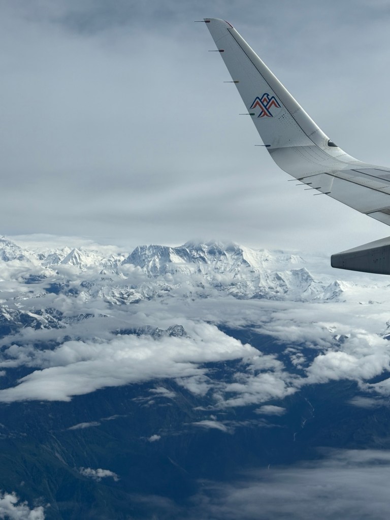 De vlucht van Kathmandu naar Lhasa is waanzinnig. Nog nooit zag ik zulke uitzichten. De Himalaya, een heel brede rivier, in India heet hij Brahmaputra, in Tibet Yarlung Tsangpo, iedere volgende blik was weer adembenemend mooi.