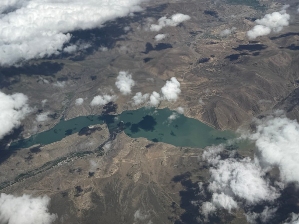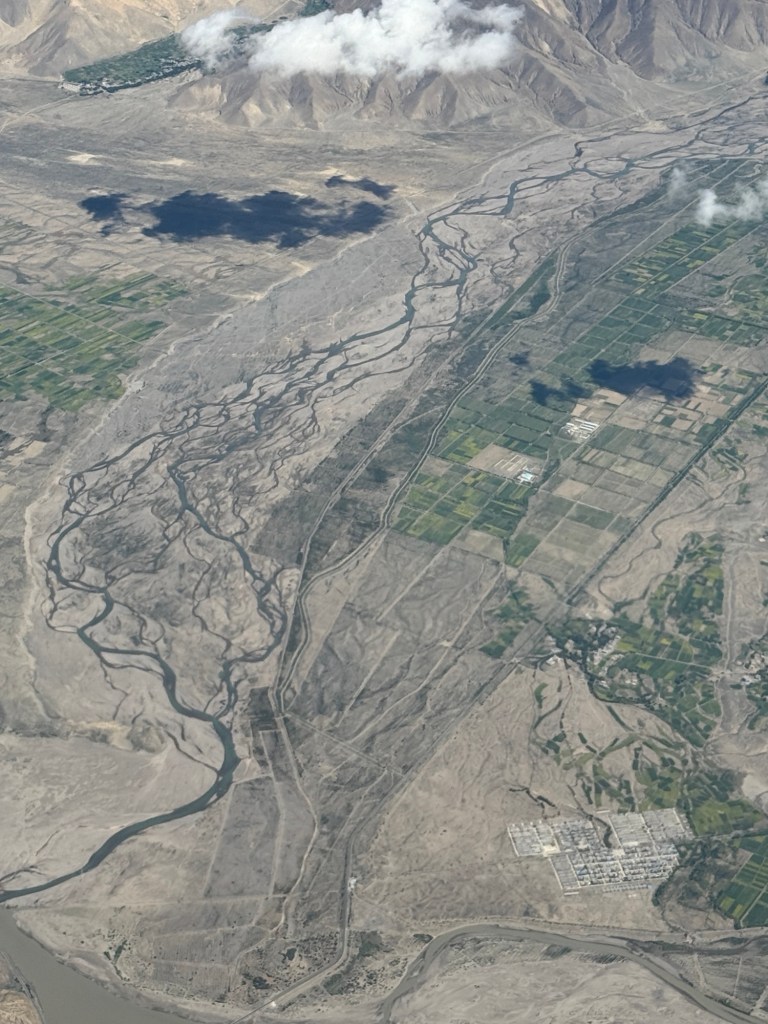 Het is opvallend dat de grond in Tibet in rechthoeken is verdeeld. Dat had ik niet verwacht. En het vliegveld is bizar modern.