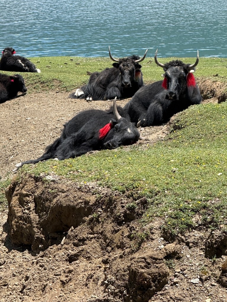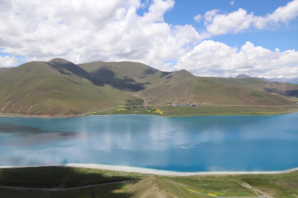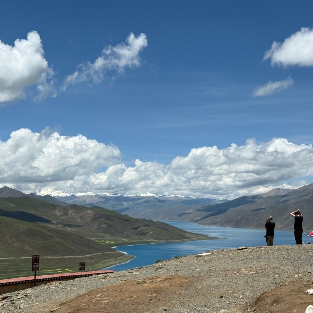 Daarna rijden we door naar Yamdrok lake, een prachtig meer. De kleur… het verandert met de zon en de wolken