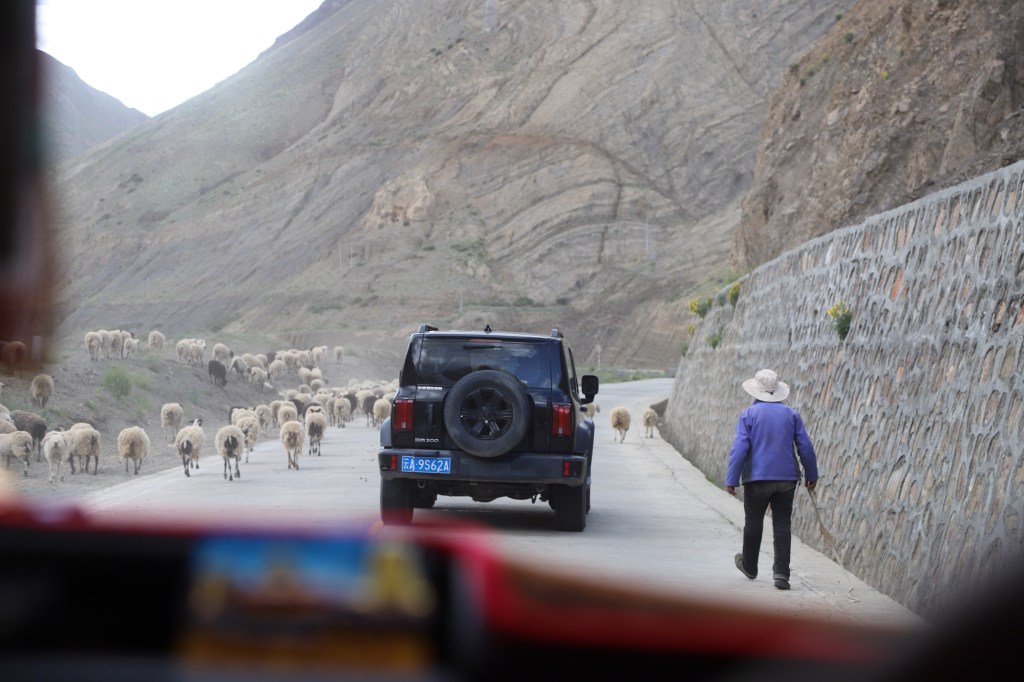 Over dromen gesproken. Deze rit van Lasha naar Gyantse. Wat een waanzinnige rit. Het ene uitzicht nog mooier dan het andere: op en naast de weg schapen, koeien en yaks.