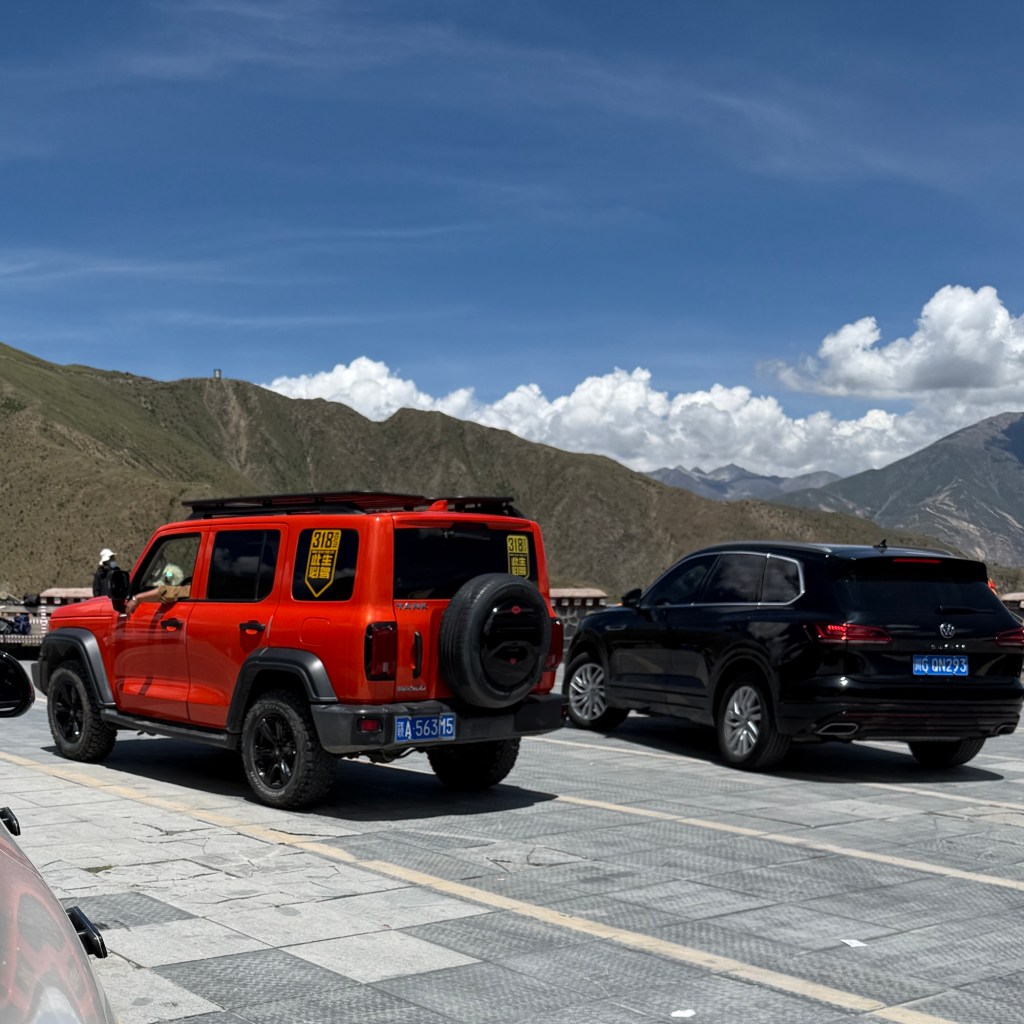 Er rijden hier heel veel oranje Tanks. Een soort namaak Jeep. Maar de kleur is puik. Helaas op de foto lijkt hij roder.