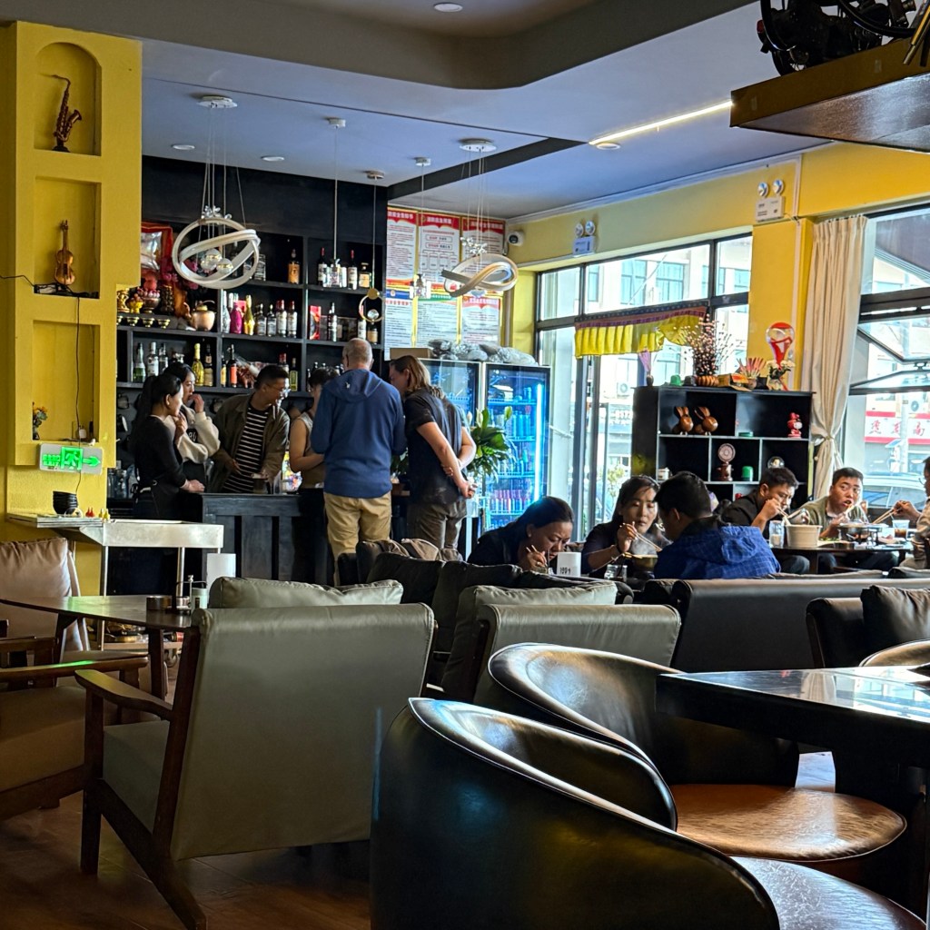 Aan het lokale ontbijtgerecht Tsampa, een basis van geroosterd gerstemeel, gemengd met boterthee, boter en soms wat suiker en yakkaas hebben we ons nog niet gewaagd. Trouwens aan de boterthee ook niet. Soms krijg je gewone thee in een aardewerkmok daar hangt dan vaak de geur van boterthee aan, ranzig.