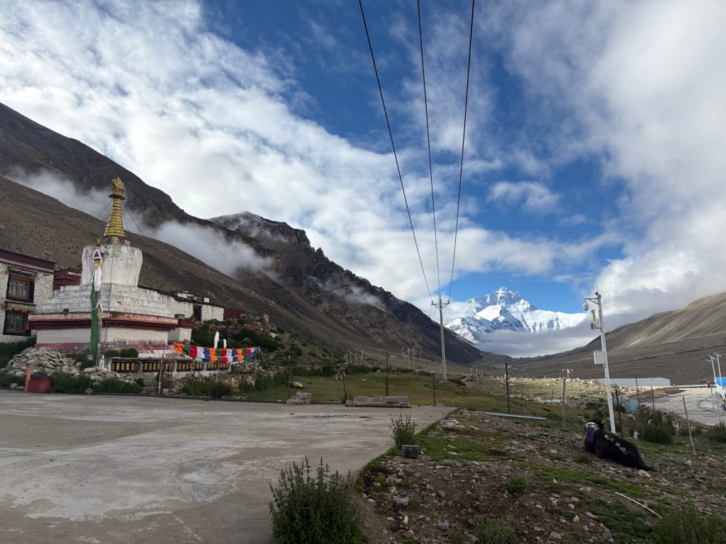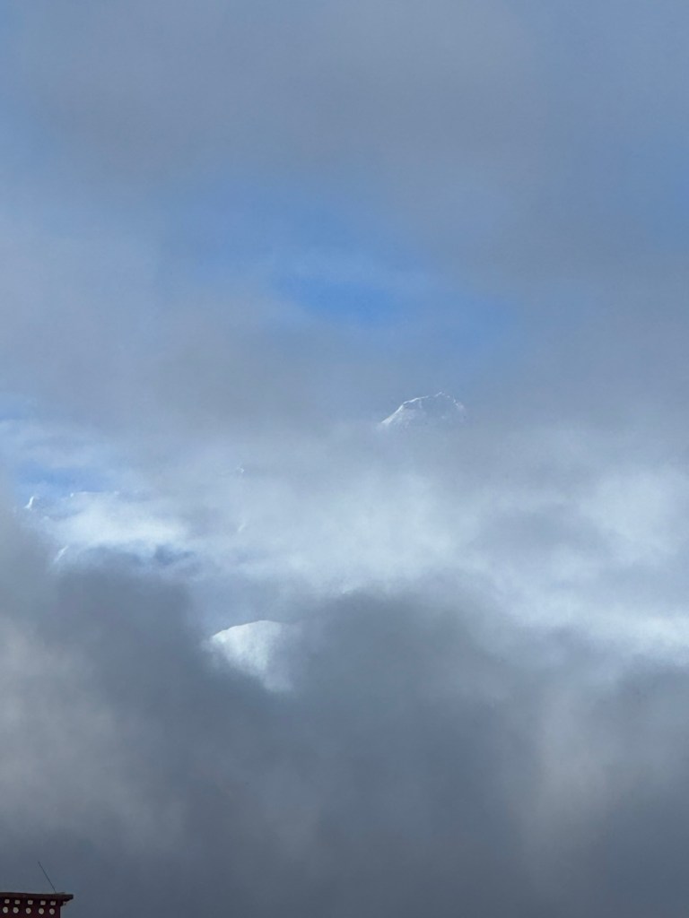 Na het ontbijt beginnen de wolken voor de top van Everest weg te trekken. Hiervan krijgen Jelmer en Roelof een kleine opleving, Ik wilde toch al het hoogste klooster van de wereld zien, Jelmer sluit zich graag aan. Thijmen wordt er niet enthousiast van en gaat op een bankje zitten.