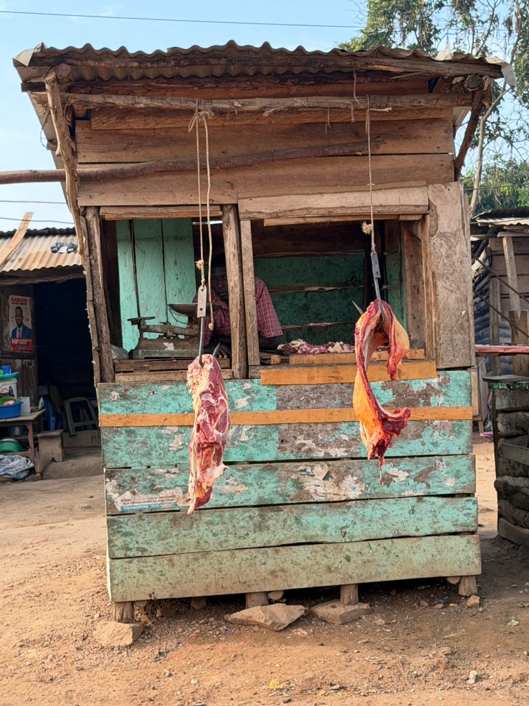 Omdat we de eerste slager, waar een enorme koeienkop met hoorns voor lag, misten, hebben we vooral veel slagerijen vastgelegd. Geen zo mooi als de eerste.