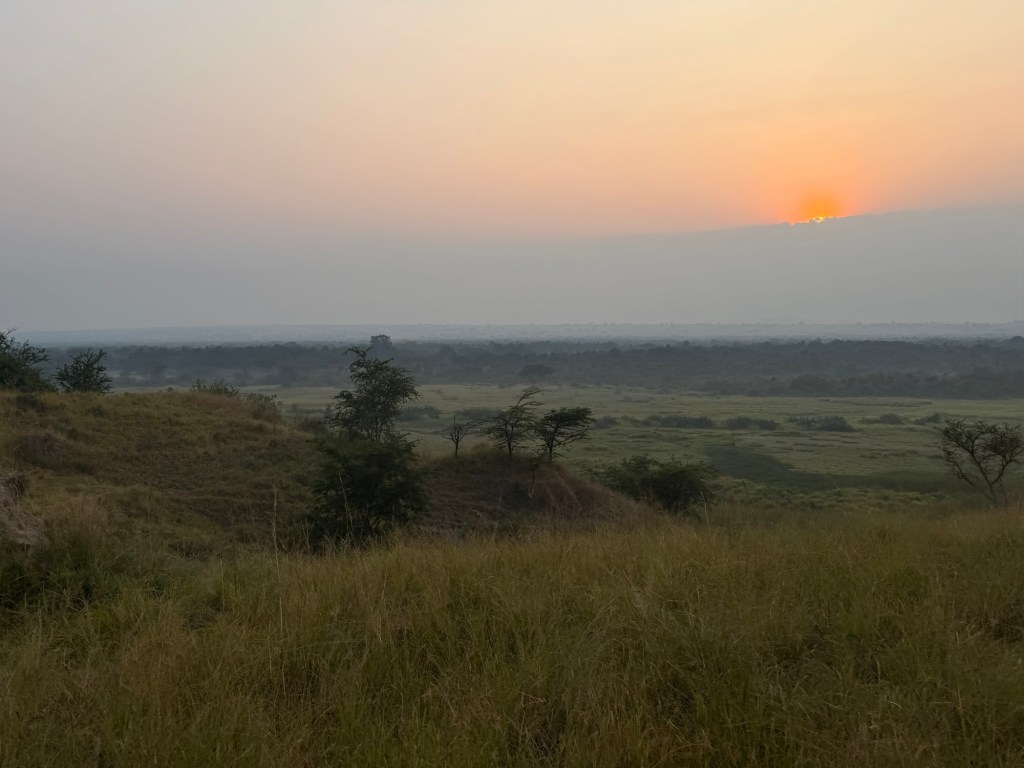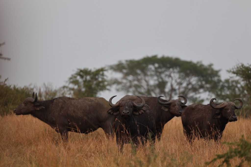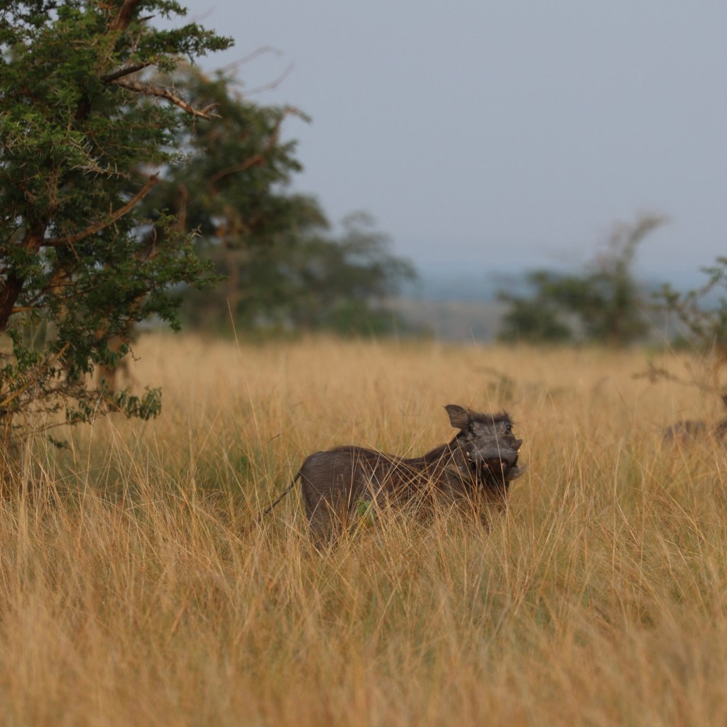 We zien grote groepen Kobs, Topi’s, buffalo’s prachtige (roof)vogels en genieten van het landschap. Maar geen in de boom klimmende leeuwen. Wel een prooi in de boom: een wrattenzwijn, zijn pootjes steken koddig uit. Twee gieren in de buurt zitten nog niet aan hem. Dat betekent dat het luipaard in de buurt is maar de boef laat zich niet zien.