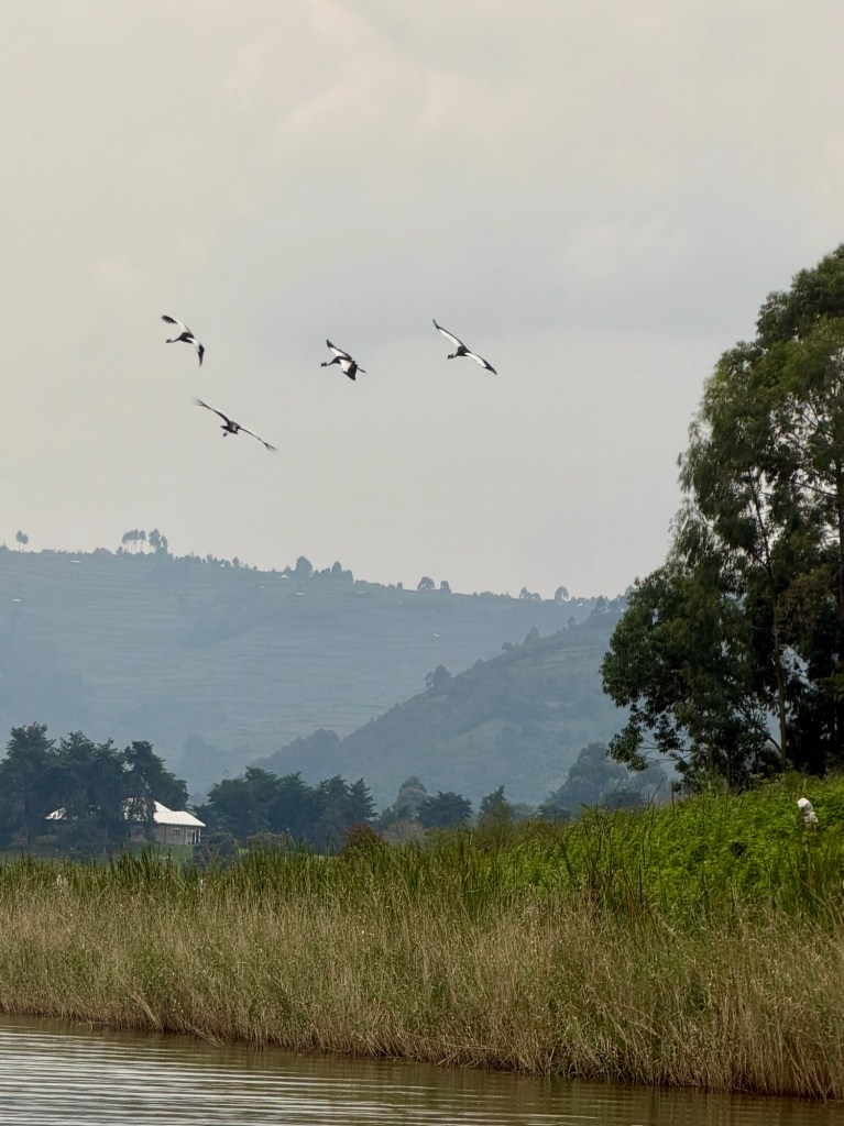 Na twee uur rijden komen we bij lake bunyonyi, het is een kratermeer met diverse eilanden. Het is 25 km lang en 9 km breed. Het is heel diep en erg koud. We gaan met een bootje naar de overkant. Het zou een vogel en vlinderparadijs moeten zijn.