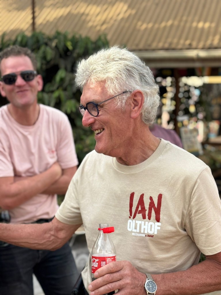 Dan kunnen we heerlijk nog even bij het hotel zitten met een kop koffie uitkijkend over de vlakte. We mogen daar nog even douchen en een heerlijke lunch verorberen.
