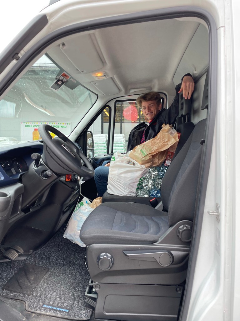 Bram geeft de vloer water (de lekkere Ramlösa met perensmaak) en plant gehaktballetjes (best zonde). Ook onze cateraar is vermoeid. We zijn alledrie moe. Echt moe. Het is goed dat we afwisselend rijden en we zijn alledrie blij als we weer thuis zijn.