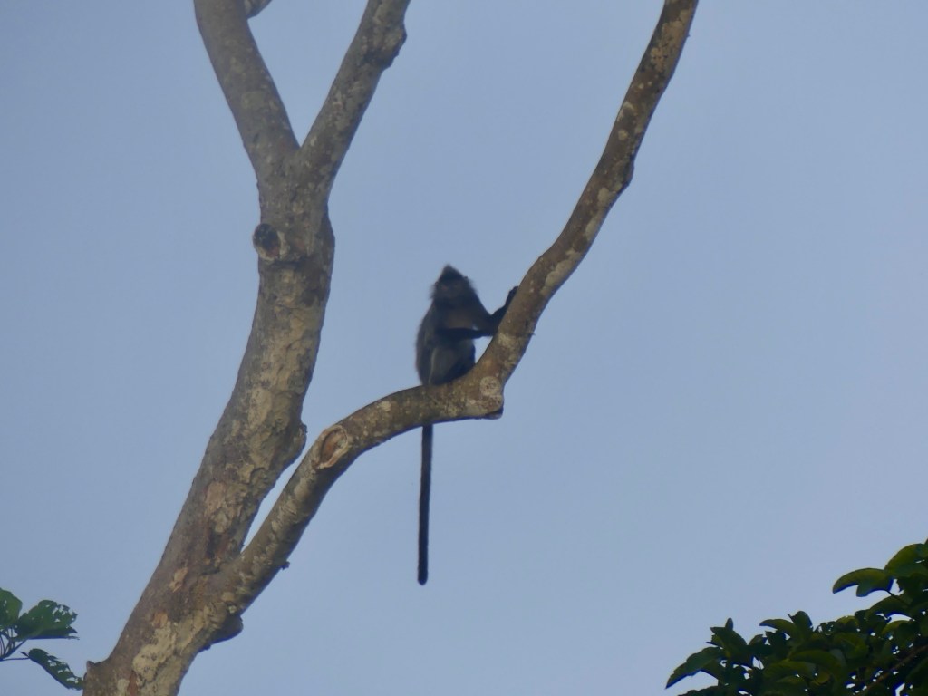 Er is een groep silver leaf langurs. (De mutslangoer). Het blijkt dat er kruisingen tussen deze langur en neusapen zijn. Dan gaat mijn brein werken. Zijn ze steriel?, dat zou je verwachten bij een kruising tussen twee soorten. Het blijkt niet zo te zien, als ik mijn verbazing uit wordt de gids helemaal enthousiast en vertelt dat ze wachten op onderzoekers; is het een crossbreeding of is het een andere nog niet beschreven soort. Kijk die zou ik dan graag zien.