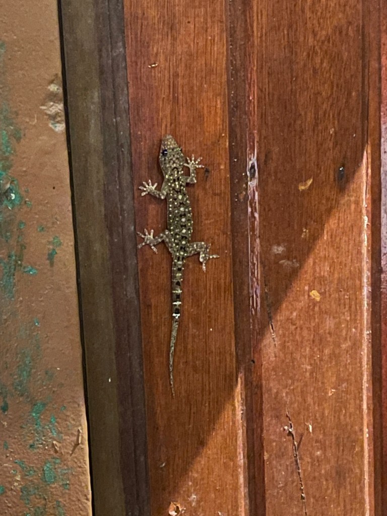 Gisteravond hadden we twee mini gekko’s aan de muur van de slaapkamer. Heel schattig. Ik dacht eerst tevreden dan komt het wel goed als er een mug langskomt. Maar helaas kwam er gelijk een tweede gedachte: waar komen die twee vandaan? En kunnen daar geen muggen door?