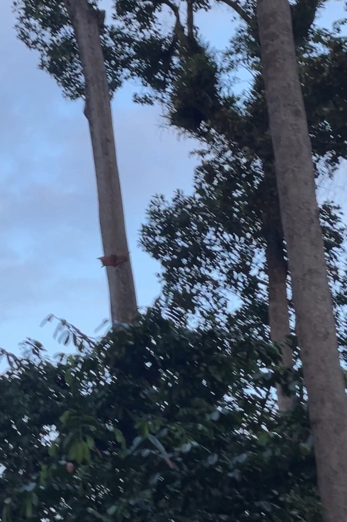 Dit is toch buitenaards Daarna hoopten we op een herhalingen van ons vliegende eekhoorn avontuur helaas waren het er nu maar twee. Wel een mega hard geluid. Een vogel, een aap? Het blijkt een cicade. Wel vuistgroot. ik kan het geluid niet makkelijk hierin zetten. Sorry