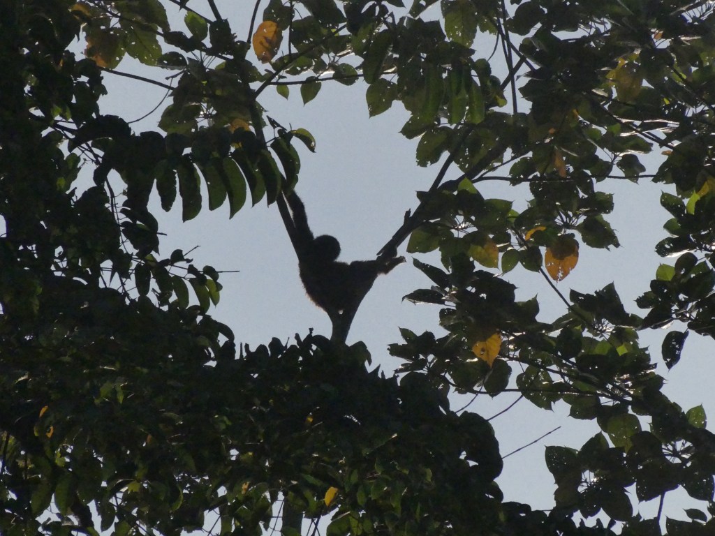 En de middagwandeling brengt ons 3 orang oetans die over ons hoofd oversteken. Ze doen dat heel grappig. Buigen bomen tot ze een andere kunnen pakken, buigen die ook weer en zo verplaatsen ze zich. Ze zijn dus in de verte redelijk goed herkenbaar aan hun boom-buig-patroon.